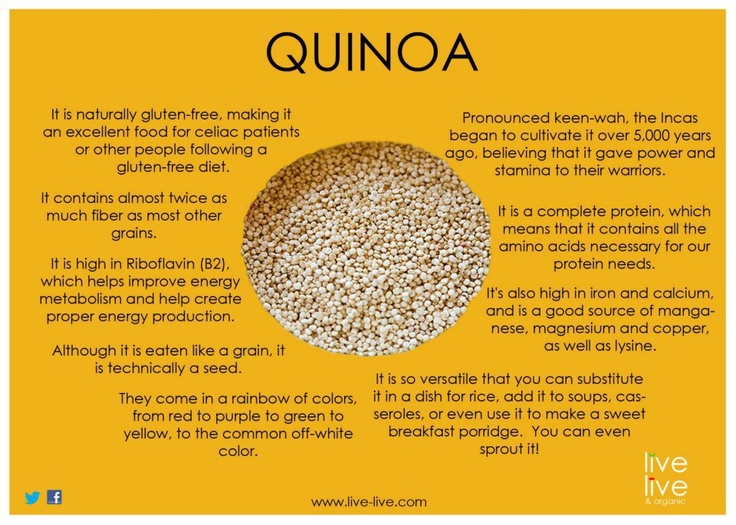 Quinoa is a complete protein source, contains all the essential amino acids and more (12-18% protein), is also particularly rich in iron - 1/2 cup contains almost 8 mg, which is much more than any other cereal grain .